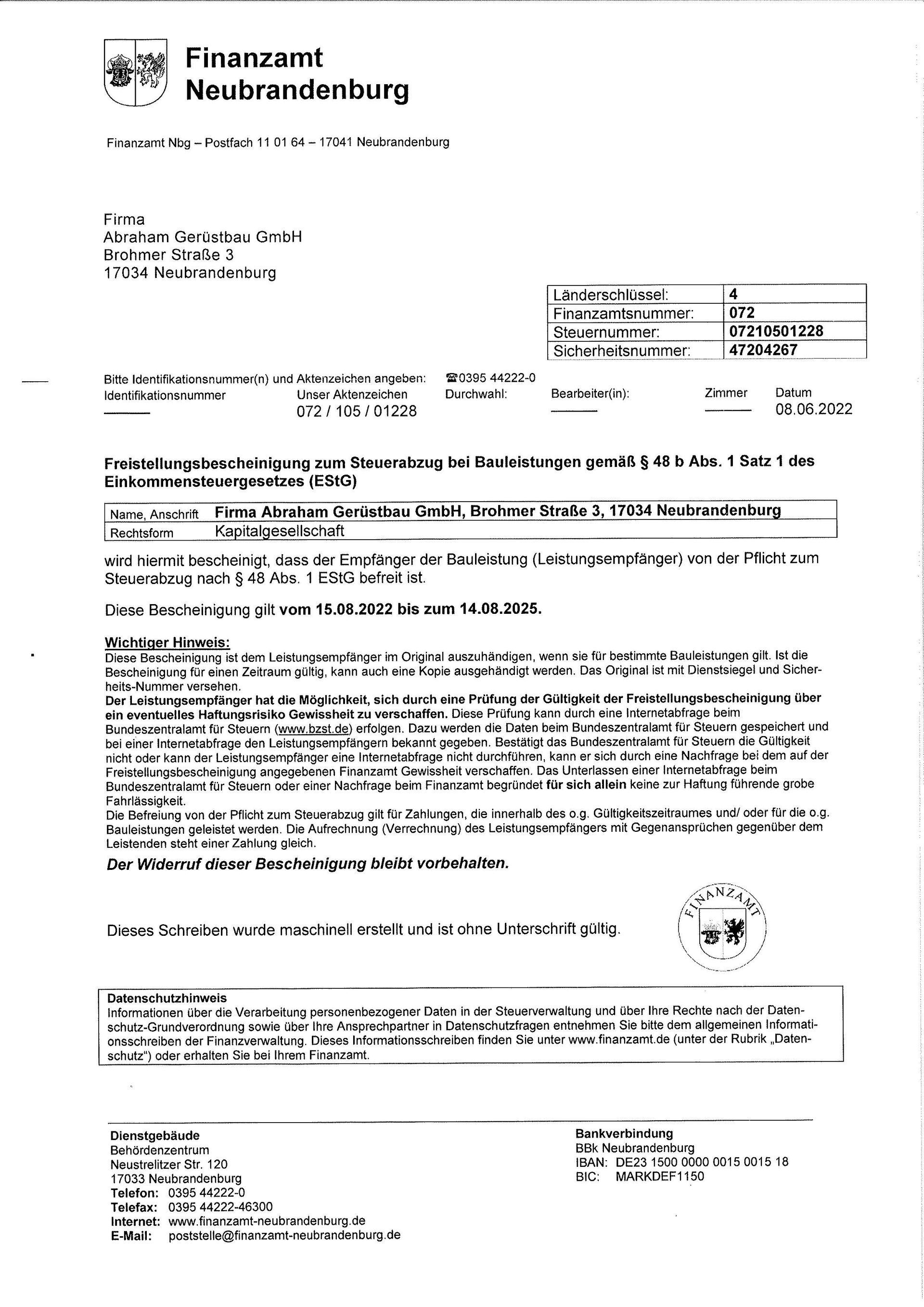 Als Partner der Bauwirtschaft und Industrie erstellt die Gerüstbaugruppe Abraham professionelle Gerüstkonstruktionen aus Stahlrohrrahmen und Rohren in jeder Größenordnung und Ausführung. Sie werden individuell auf das Bauwerk und die arbeitstechnischen Vorgaben der Anwender zugeschnitten.